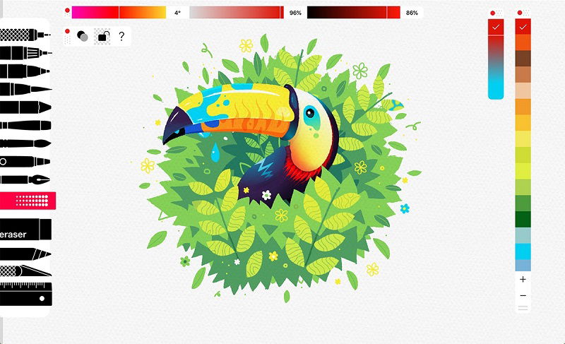 Its interface is minimalist, intuitive, easy-to-use, and requires almost no instruction to start creating. This also helps users focus on their artwork with no distractions.